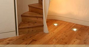 Specialist Finishes.Fuming, stains, coloured oils and specialist effects are all possible, but the client (the end-user) should be made aware that repairs to these finishes are difficult or impossible to match in. To remove damage the whole floor has to be sanded back to bare wood and re-treated.We are happy to agree colours and depth of sheen on site, in the rooms where our floor has been laid. Maintenance and Repair.Our floors require no maintenance other than keeping clean and free of grit. Remember, abrasive shoes and grit and dirt from outside will all have an effect on the floor finish.If the surface becomes damaged, call us and we will arrange for the repairs. If after years of use you require full maintenance, we are happy to provide the service of re-sanding and sealing. Cleaning.The secret to keeping our floors looking good is to keep grit and dirt away.Use mats or carpets for this. Vacuum or sweep the floor regularly. If dirty, wash with warm water and a little detergent like Flash to release the grease and dirt. Use a squeezable sponge and rinse frequently in a clean bucket of water. Do not flood the floor. Avoid dirt being ground into the floor. Never use additives in the cleaning process. Products that call themselves wood care, wood soap, wood feeder etc, are to be avoided. Use of silicon and waxes in cleaning products can prevent local or total repair, unless the floor is chemically cleaned. Remember even 2% wax in a cleaning solution becomes 100% wax when the floor dries. Apart from poor adhesion, it can also smear unattractively. |