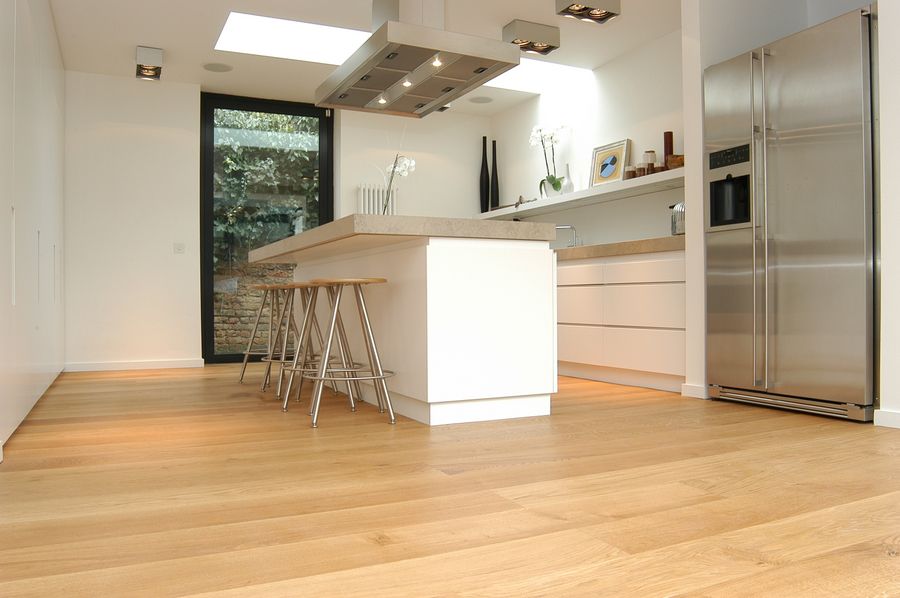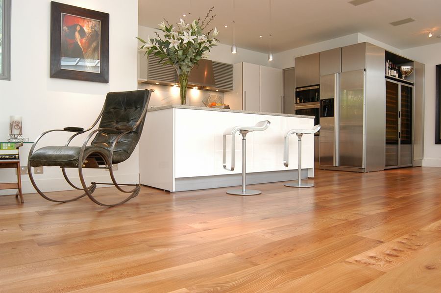 Our FlooringTemperate Engineered Flooring.Our species are all non-tropical and fully sustainable:European oak, English elm, American black walnut, Canadian maple, American white oak, American white ash. The flooring is manufactured with a core of 12mm 9-layer 100% birch plywood, faced with 4mm prime hardwood and backed with 4mm hardwood of the same or similar species. The floorboard is 200mm wide, 20mm thick, random length, normally 1800mm to 3000mm. When laid, the floor looks like a traditional timber floor, with a single slice of wood to each board. All the materials used are fully sustainable, sourced in the United Kingdom, Northern Europe and North America. Our timber suppliers produce from managed forests, to Forest Stewardship Council (FSC) or equivalent standard. Temperate Engineered Flooring can be used in most environments: