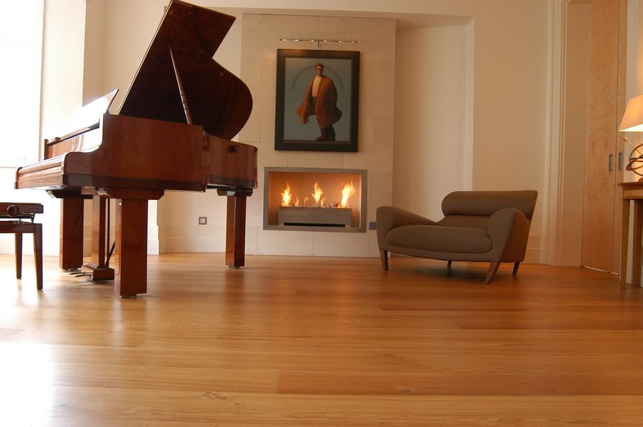 Acoustic Insulation and Timber flooring.Noise is an important consideration when specifying timber floors. Impact sound can be heard through hard floor surfaces. Measures should be taken to minimise sound transfer.First, check with your lease or covenants. There may be a requirement to meet the old or new Building Regulations, or a specific decibel rating between apartments. It is much easier and cheaper to fit acoustic insulation before the new floor is laid. We can arrange for before and after acoustic tests and advise on materials and methods. A floating engineered floor has the advantage that it can flex slightly and the energy be absorbed in a resilient layer incorporated in the floor build up. As the impact occurs this layer compresses and then flexes back having absorbed some of the impact energy. There are different quilts, flexible batten supports, acoustic panels and absorbent interlayers. These may be suitable for your particular project. Every construction is slightly different, and to be absolutely sure that you are complying with the byelaws an acoustic consultant is necessary. He or she will be able to measure the sound transmittance through the full build-up of the existing structure, insulation and floor finish. Installers that bond flooring to the substrate are not able to isolate the floor acoustically. Under Part E of the new Regulations, airborne sound passing from one existing dwelling to another must be reduced by at least 43dB. Impact sound passing between dwellings must not exceed 64dB. For new buildings, these figures are 45dB and 62dB respectively. The acoustic consultants, Bickerdike Allen Partners, have helped us with tests. |